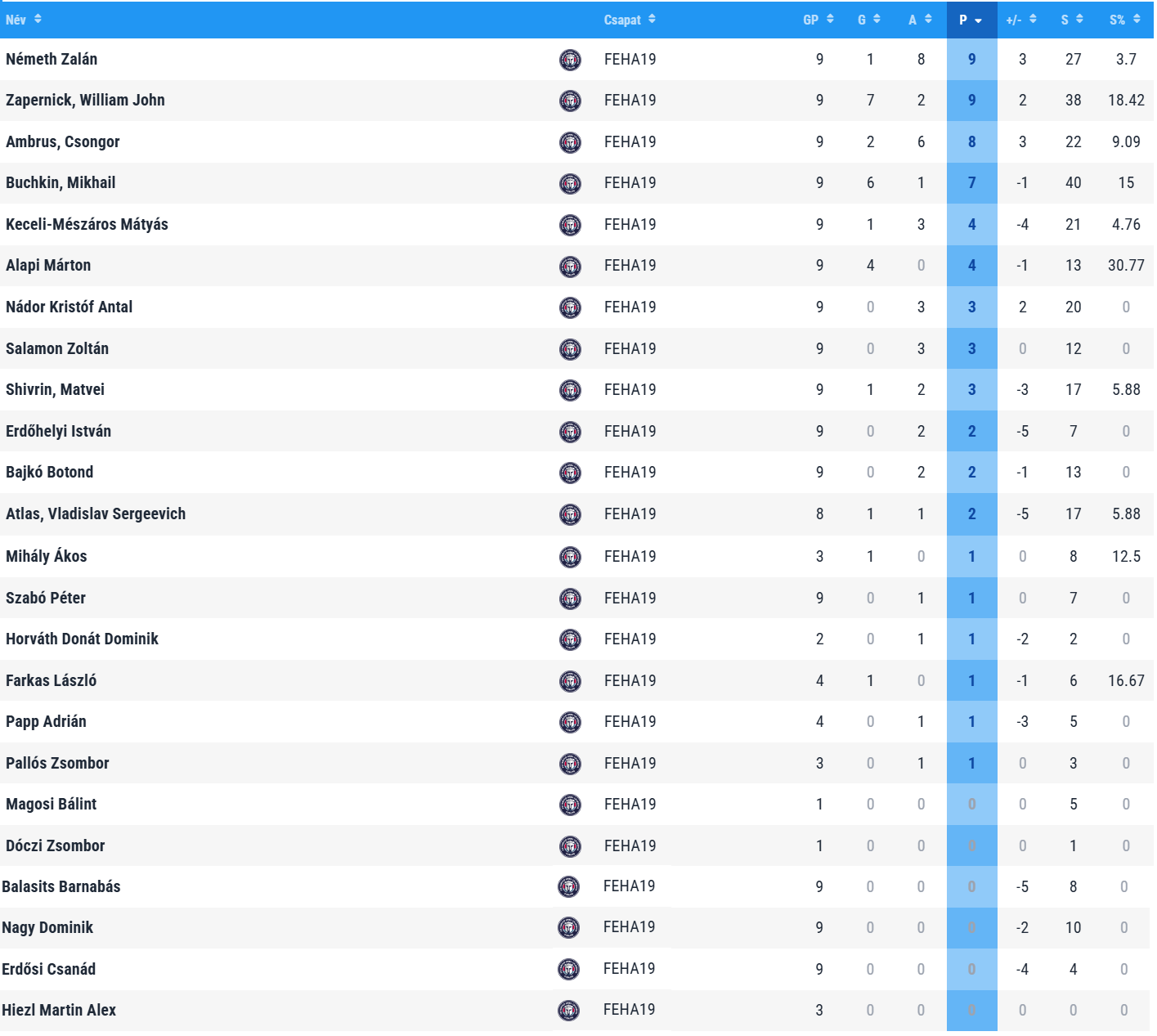 Egyéni statisztikák (U18i - Phase 1)