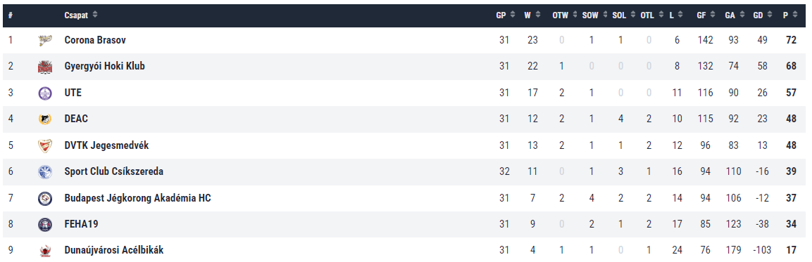Eredmények (Erste Liga)